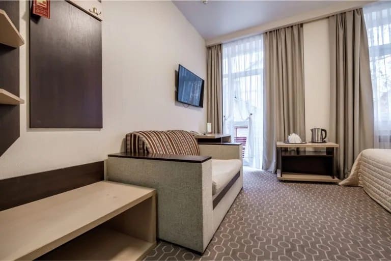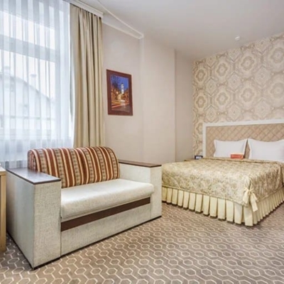 - При бронировании трёхместного номера, предоставляется размещение категории TWIN+ EXB (стандартный номер с двумя раздельными кроватями + дополнительное спальное место( возможно еврораскладушка))